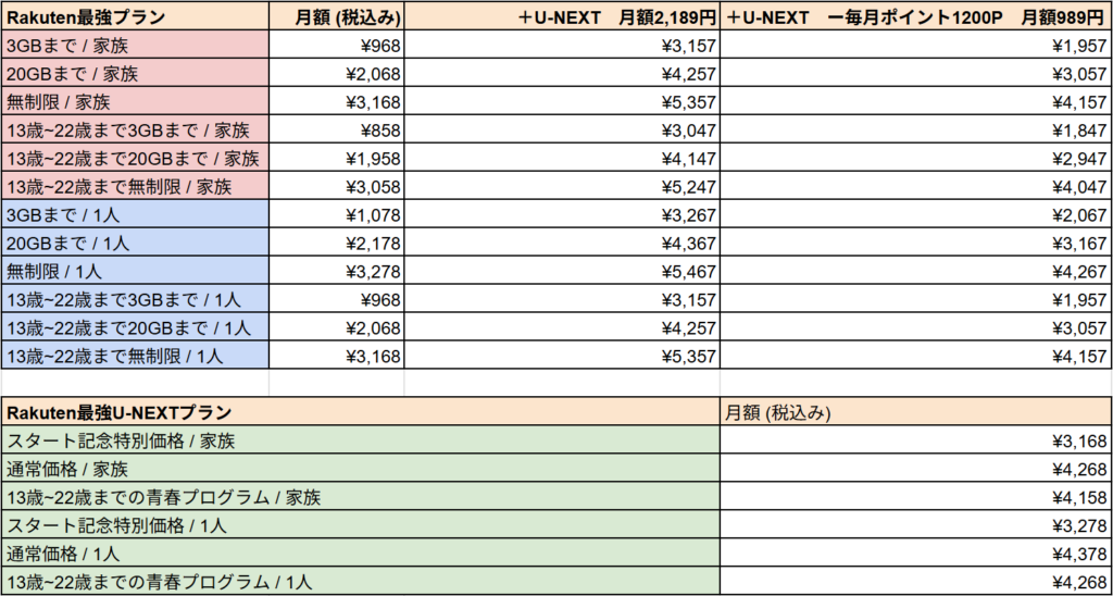 - Rakuten最強U-NEXTプランの正確な料金とサービス内容