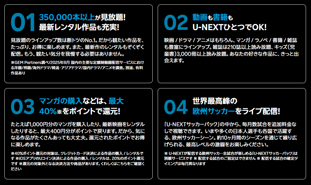 - U-NEXTの膨大な見放題作品をメインに楽しみたい(ポイントはあまり使わない)